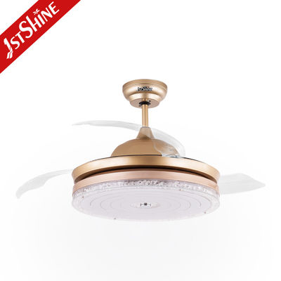 3 Διαφανείς Λεπίδες Χρυσός Μοντέρνος Αναδιπλούμενος Ανεμιστήρας Οροφής με Φως LED