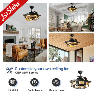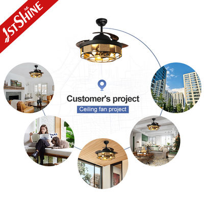 Εσωτερικός Μαύρος Αναδιπλούμενος Ανεμιστήρας Οροφής 42 ιντσών με Φως και Τηλεχειριστήριο