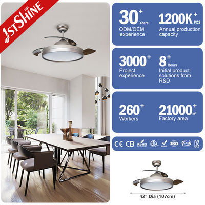 Αναδιπλούμενο ανεμιστήρας οροφής 42 ιντσών με τηλεχειριστήριο, κινητήρας DC, 3 πλαστικά πτερύγια, LED