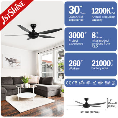54 ιντσών κινητήρας DC μαύρος πλαστικός ανεμιστήρας οροφής με τηλεχειριστήριο 6 ταχυτήτων