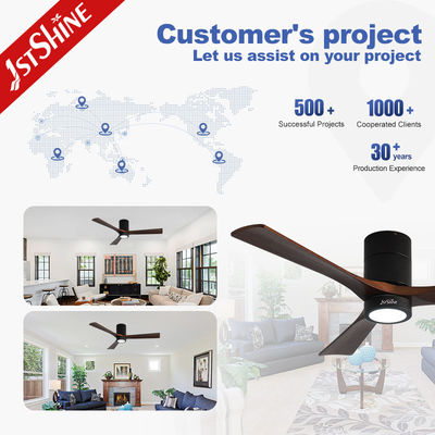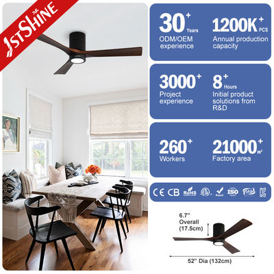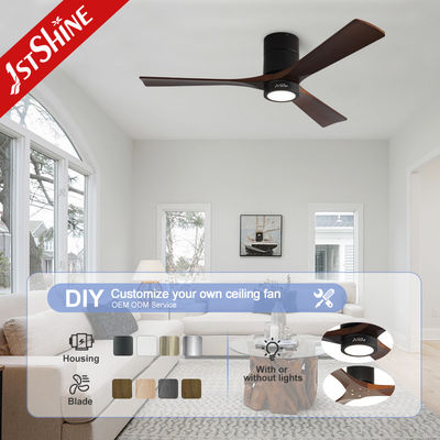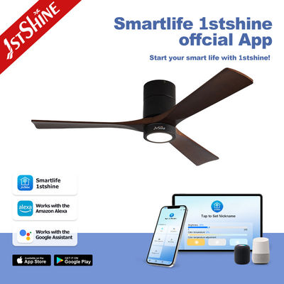 Διακοσμητικό 3 φυσικές ξύλινες λεπίδες Flush Mount Led Tuya έξυπνο ανεμιστήρα οροφής με φως