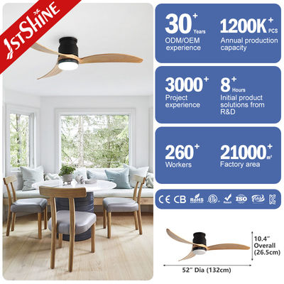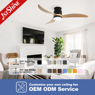 Διακοσμητικό 3 φυσικές ξύλινες λεπίδες Flush Mount Led Tuya έξυπνο ανεμιστήρα οροφής με φως
